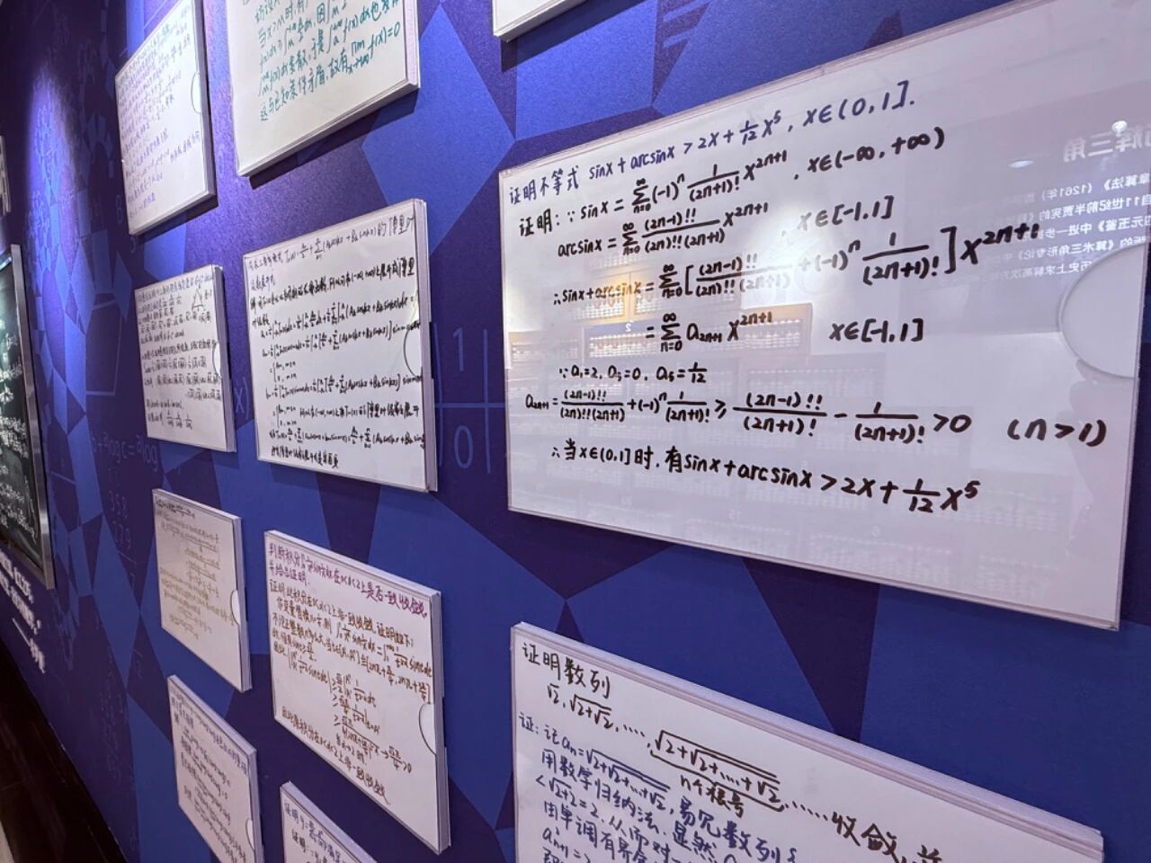 这次学院用28个算盘亲手摆出杨辉三角的形态,搭配详实的背景简介,让枯燥的数学知识瞬间“立”了起来。老师备课能直观举例,学生路过能随手观察,连路过的其他院系师生都忍不住驻足——这面墙不仅传播了数学文化,更解决了“抽象知识难感知”的痛点,让数学之美变得可看、可感、可学。